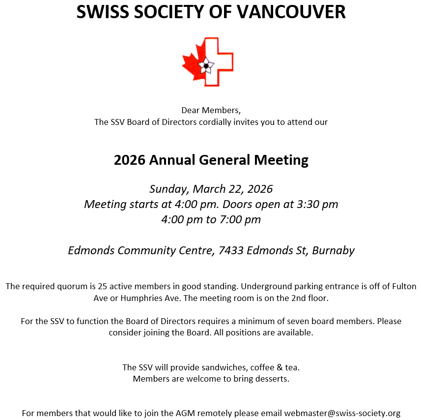 The March/April 2026 Edition of the Swiss Herald is now available for download from our website.